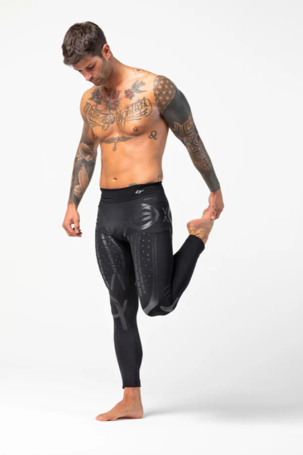 HYPER MAN es el primer leggings biomecánico para hombre diseñado para proporcionar un soporte completo durante la actividad física, combinando compresión gradual, aplicaciones serigráficas y biocerámicas para maximizar el rendimiento y reducir los tiempos de recuperación.