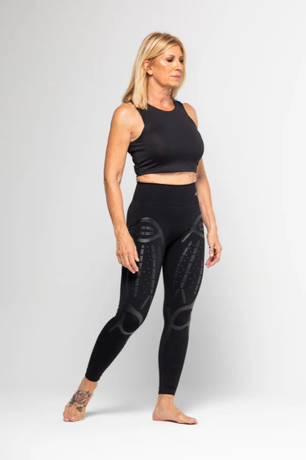 HYPER WOMAN es el primer leggings biomecánico para mujer diseñado para ofrecer compresión gradual y protección avanzada durante la actividad física, creado para mejorar la estabilidad muscular y acelerar la recuperación post-entrenamiento.