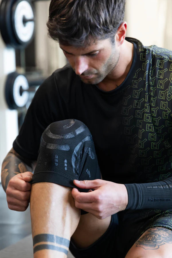 KNEE SUPPORT es la rodillera biomecánica diseñada para estabilizar y proteger la rodilla y la rótula durante la actividad deportiva. Utiliza bandas de silicona protectoras y tejidos antiinflamatorios para ofrecer soporte a las estructuras tendinosas y los ligamentos, reduciendo el riesgo de traumatismos, inflamaciones y acelerando la recuperación.