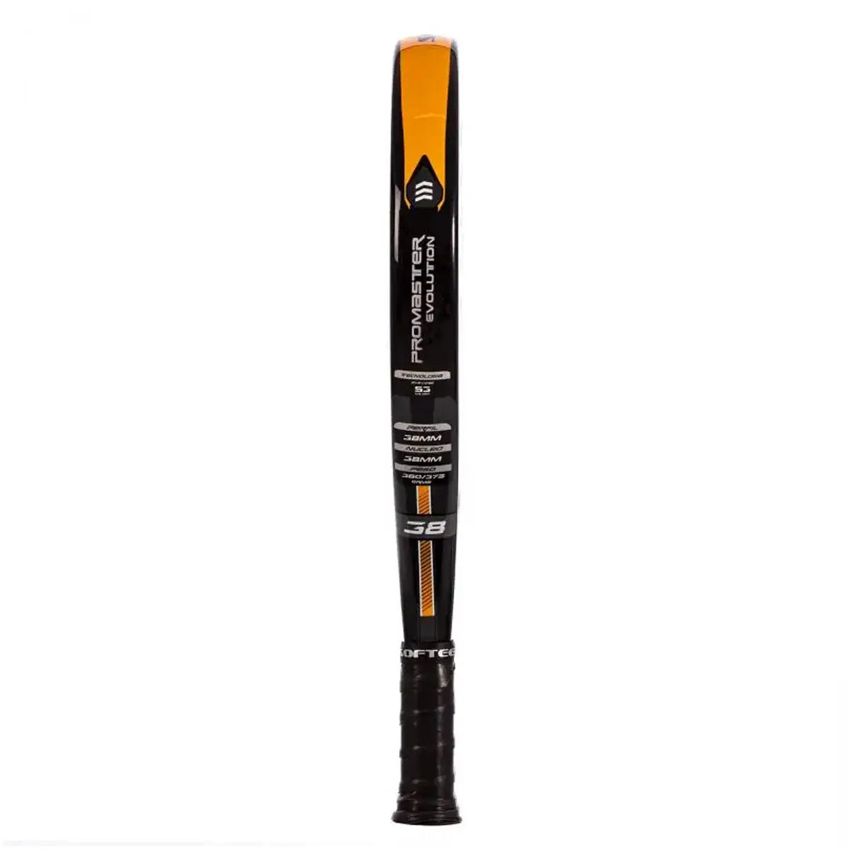 La Softee Pro Master Evolution es una pala de pádel diseñada para ofrecer un rendimiento equilibrado, ideal para jugadores intermedios que buscan potencia, control y durabilidad en un solo modelo. Su formato lágrima y punto dulce centrado permiten un juego polivalente con salidas potentes y controladas.