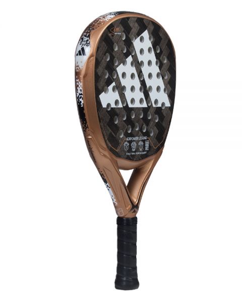Con un punto dulce alto y forma de diamante, la Adipower Legend te permite trabajar la potencia de tus golpes. Su balance alto genera más potencia en la salida de las bolas. Las caras de fibra de carbono aluminizado 2 en 1 y el núcleo de goma EVA Soft Performance ofrecen golpes potentes y equilibrio.