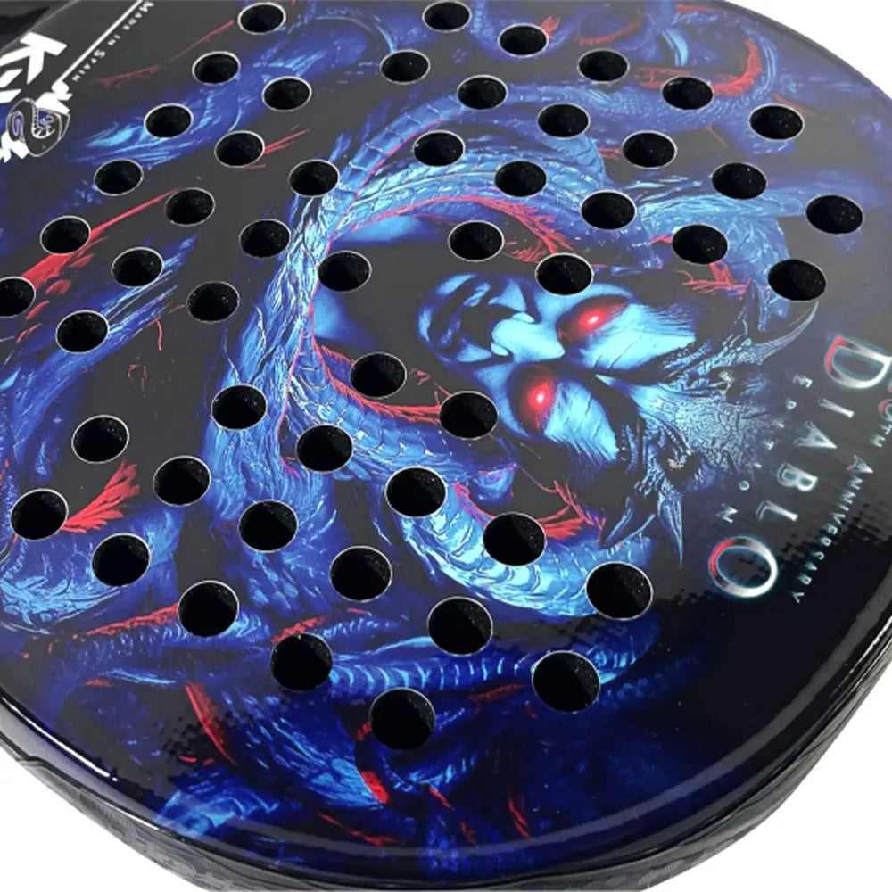 La Akkeron Diablo Edition 20th Anniversary es una pala de pádel equilibrada, diseñada con forma de lágrima y balance bajo, perfecta para jugadores que buscan un rendimiento versátil tanto en defensa como en ataque. Su diseño agresivo y su estructura de carbono garantizan precisión, control y un tacto excepcional en cada golpe.
