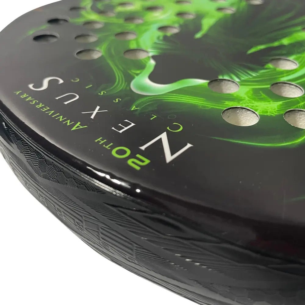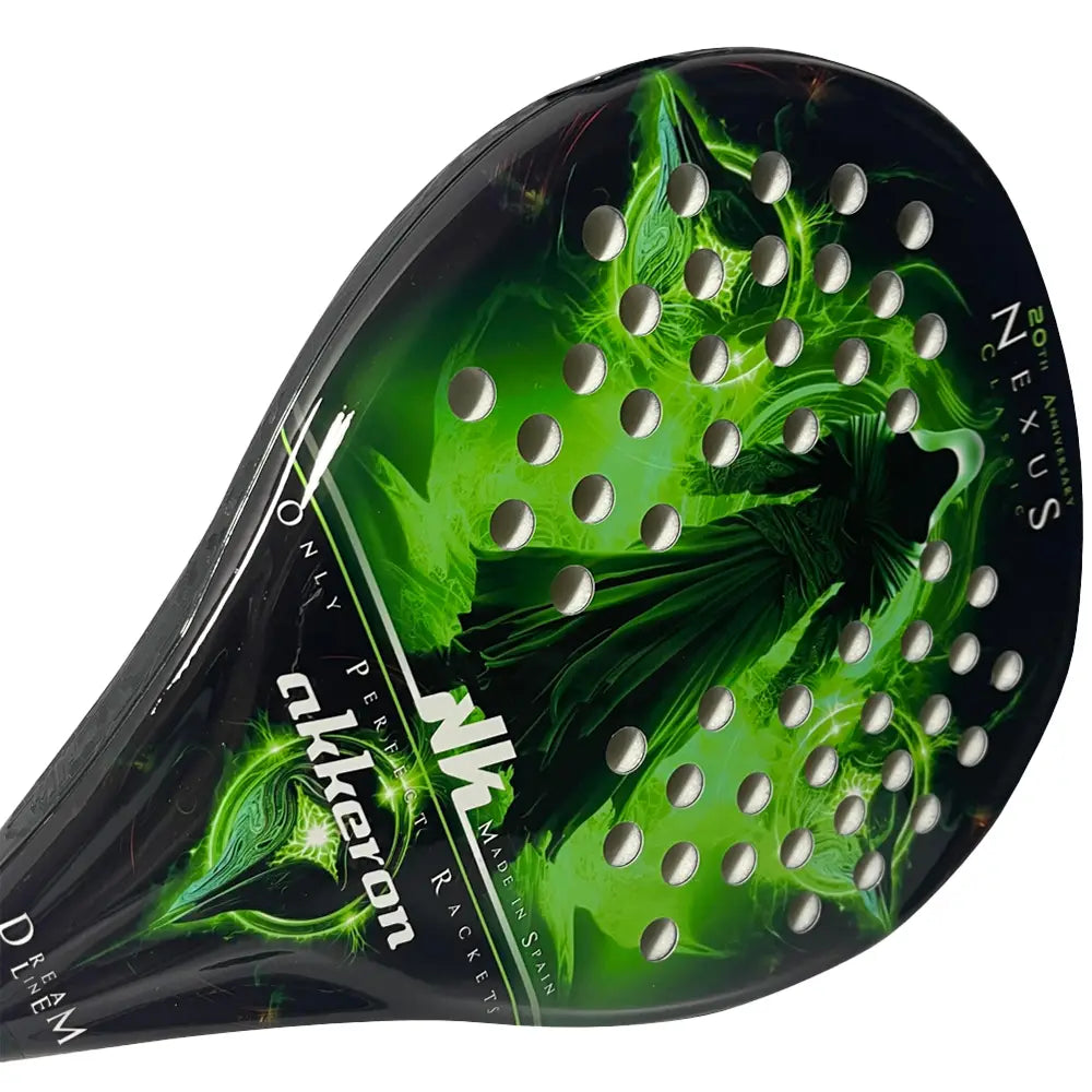 La Akkeron Nexus 20th Anniversary es una pala de control absoluto y tacto confortable, pensada para jugadores que valoran la precisión en cada punto. Su forma redonda con balance bajo garantiza un juego suave, sin vibraciones, ideal para dominar tanto en defensa como en la red.