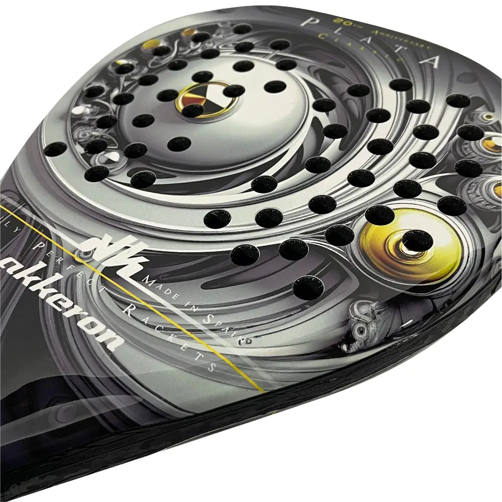 La Akkeron Plata 20th Anniversary es una pala de gama alta, versátil y precisa, perfecta para jugadores que quieren dominar todos los aspectos del juego. Su tecnología avanzada y materiales premium aseguran un rendimiento sin fisuras, tanto en defensa como en ataque.