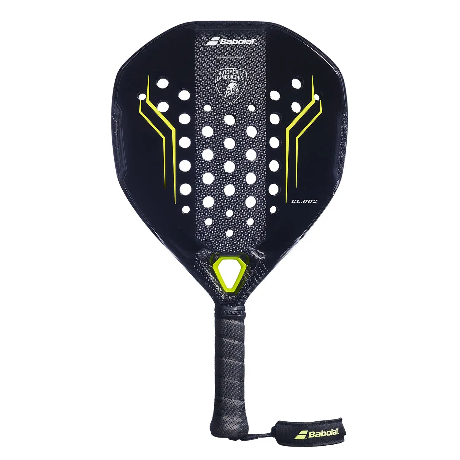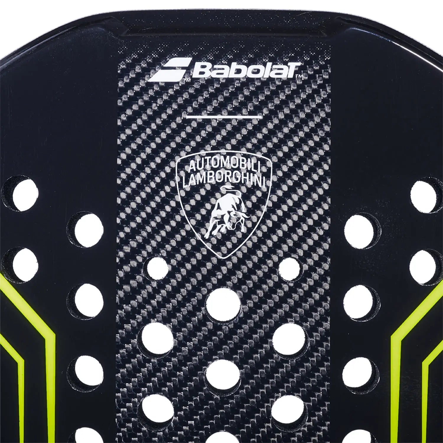 La Babolat x Lamborghini BL002 Black es una pala de pádel premium nacida de la colaboración entre dos gigantes del alto rendimiento. Con una estética refinada en color negro con detalles amarillos y el logo de Lamborghini, esta pala representa potencia, precisión y diseño exclusivo. Su formato híbrido y balance medio permiten un control total sin sacrificar fuerza, ideal para jugadores exigentes.