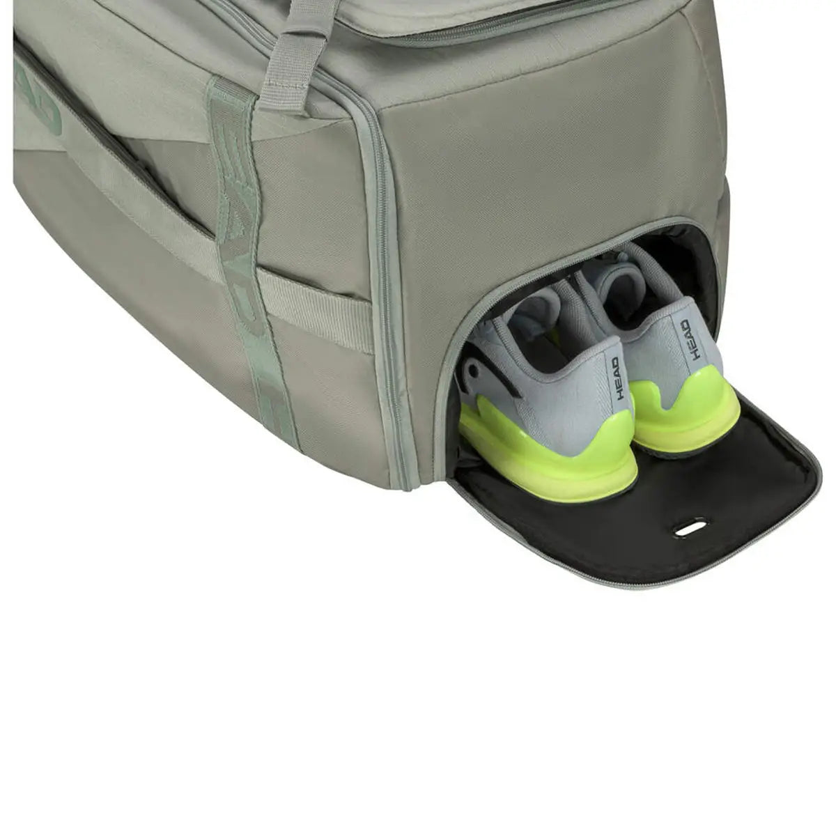 La Bolsa Head Pro L Verde es una elección ideal para jugadores de tenis o pádel que buscan organización, capacidad y diseño profesional. Utilizada por el tenista Matteo Berrettini, esta bolsa ha sido diseñada para acompañarte tanto dentro como fuera de la pista, destacando por su estructura inteligente y su estilo moderno en color verde sobrio.