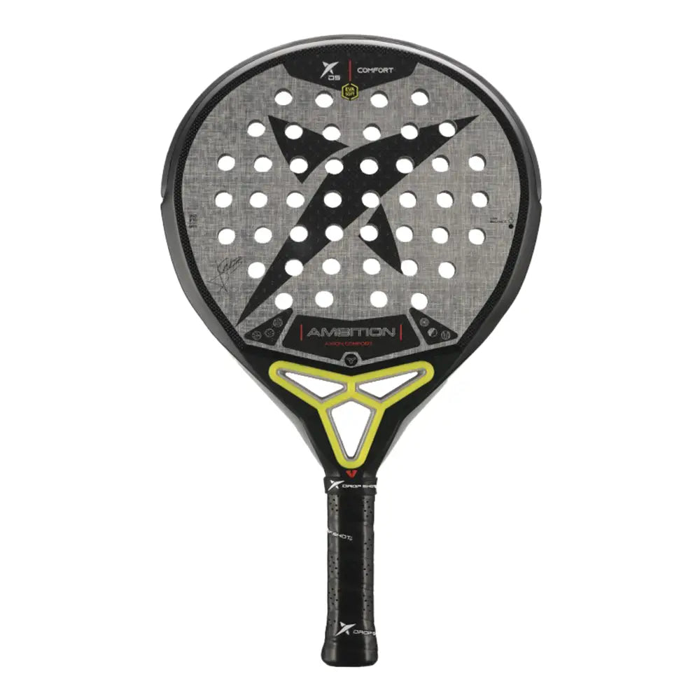 La Drop Shot Axion Comfort 2025 es una pala de la prestigiosa colección Ambition, diseñada en colaboración con Jon Sanz para jugadores avanzados que buscan destacar en la competición. Con su formato redondo y balance bajo, proporciona un control superior en cada golpe. Su diseño en negro, con caras en plata y un distintivo detalle amarillo en el corazón, le confiere un aspecto moderno y elegante.