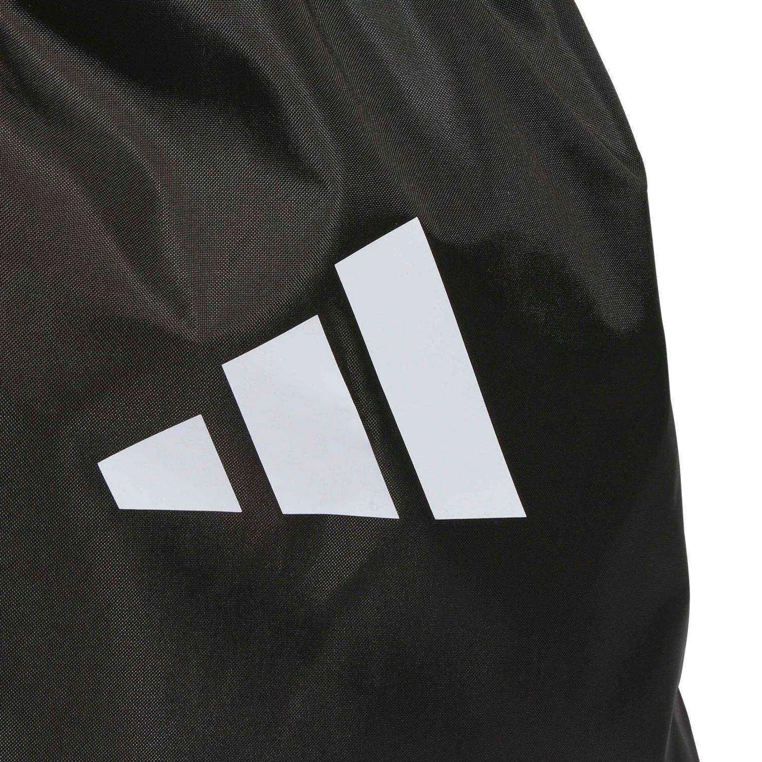 Este gymsack se puede llevar colgado en los hombros gracias a su sistema de cierre con cordón ajustable, o sujetarlo desde el asa superior para un transporte rápido. Su diseño sobrio en color negro incorpora el logotipo Adidas en blanco y las tres bandas, aportando un toque clásico y elegante.