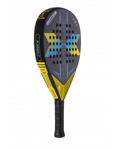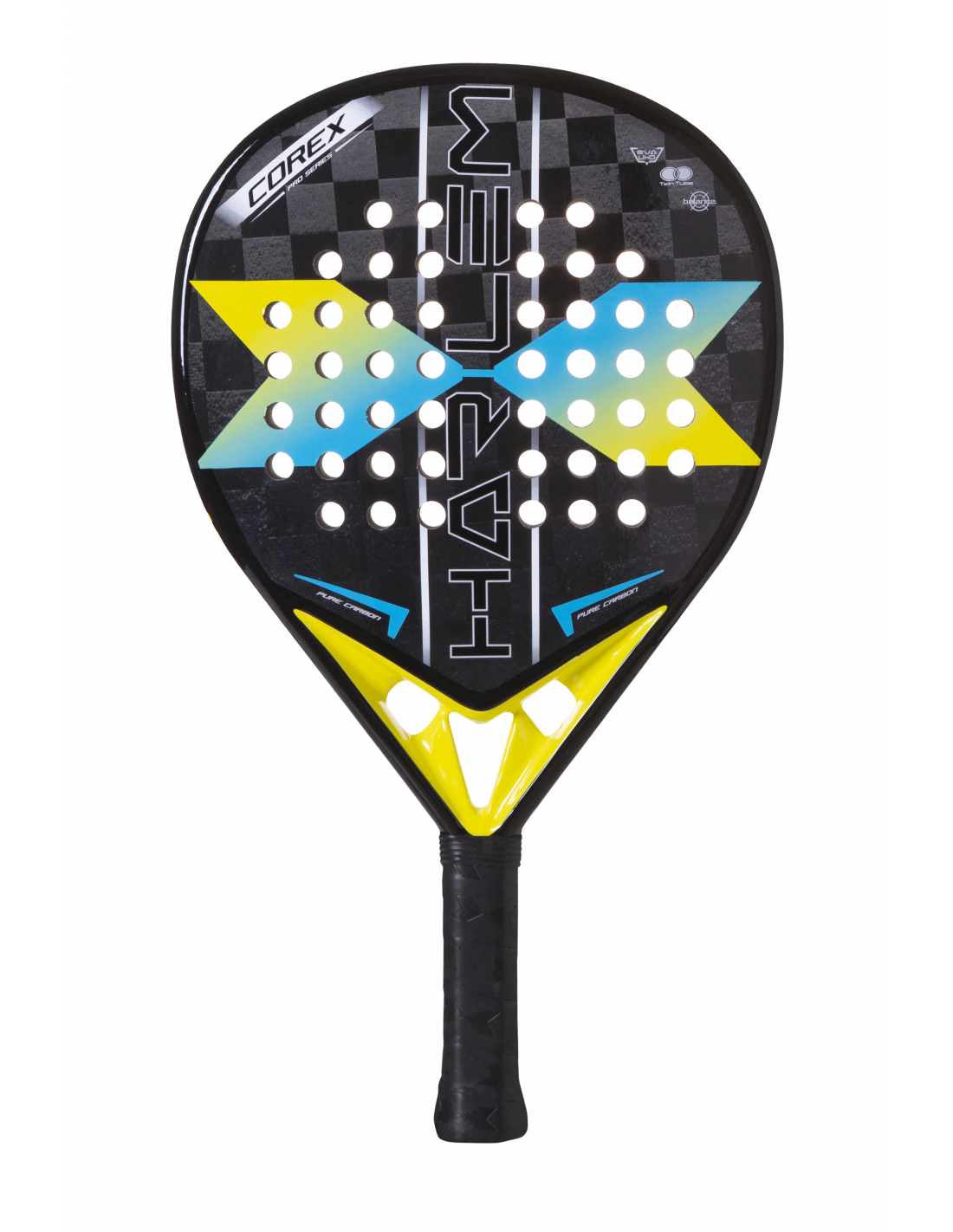 Corex 18K se trata de uno de los modelos de la nueva gama Harlem Pádel. Como en el resto de esta nueva colección, lo más novedoso es el puente triple de un molde fabricado con las últimas tecnologías, haciendo que la pala aumente su firmeza y potencia en cada golpeo.