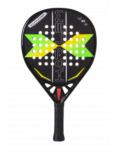 Euphoria Green es uno de los modelos de la nueva gama Harlem Pádel. Como en el resto de esta nueva colección, lo más novedoso es el puente triple incorporando en la parte central un anti vibrador, haciendo que la pala aumente su firmeza y la potencia en cada golpeo.