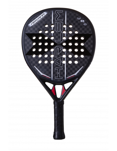 La gran diferencia respecto a los modelos Harlem Pádel en 18 K, es el puente previamente descrito y su acabado mate-brillo que hace que la pala sea más resistente y ofrezca un plus de potencia en cada golpeo. Además, estéticamente se ha optado por un modelo con una estética muy elegante, donde predominan colores oscuros y sobrios como el negro y el gris aunque incorpora detalles rojos para mantener una excelente vistosidad. El carbono de los planos, 12K, crea un modelo resistente de alta durabilidad y calidad, perfecto para jugadores de ataque. La capa exterior más compacta ofrece un plus de potencia en el golpeo, mientras que la capa interna de menor densidad favorece el control en las bolas más lentas. En definitiva, este modelo es polivalente, con un equilibrio ideal entre potencia y control. Está diseñada para jugadores con un nivel avanzado o profesional y tiene un acabado mate con el logo de la marca en brillo, dando una sensación de elegancia extrema. Su forma es híbrida y el balance medio-alto hace que proporcione ese espectacular equilibrio entre potencia y control que muchos jugadores buscan.