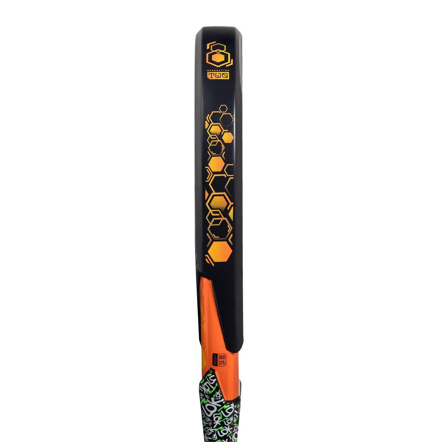 Con un peso de 360 a 375 gramos, esta pala proporciona una estructura sólida y manejable. El marco Mixed Carbon garantiza resistencia y estabilidad, mientras que los planos de Flex Fiber ofrecen un tacto suave y flexible. Su núcleo Custom EVA se adapta al estilo de cada jugador, proporcionando una respuesta dinámica y progresiva.
