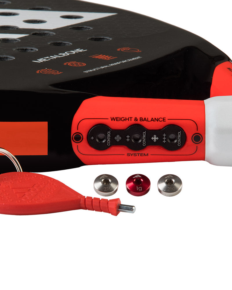La pala Adidas Metalbone 3.2 2023 de Ale Galán está equipada con la innovadora tecnología Weight and Balance System que te brinda un control total sobre tu juego. Con esta avanzada tecnología, puedes variar el peso del puente de tu pala, de 0 a 12 gramos, permitiéndote personalizar el equilibrio según tus preferencias o incluso la situación del partido o la pista.  Ya sea que busques el punto dulce en la parte media-baja para un mayor control o desees un balance más alto para potenciar tus golpes, esta pala te ofrece flexibilidad en el control y la potencia.
