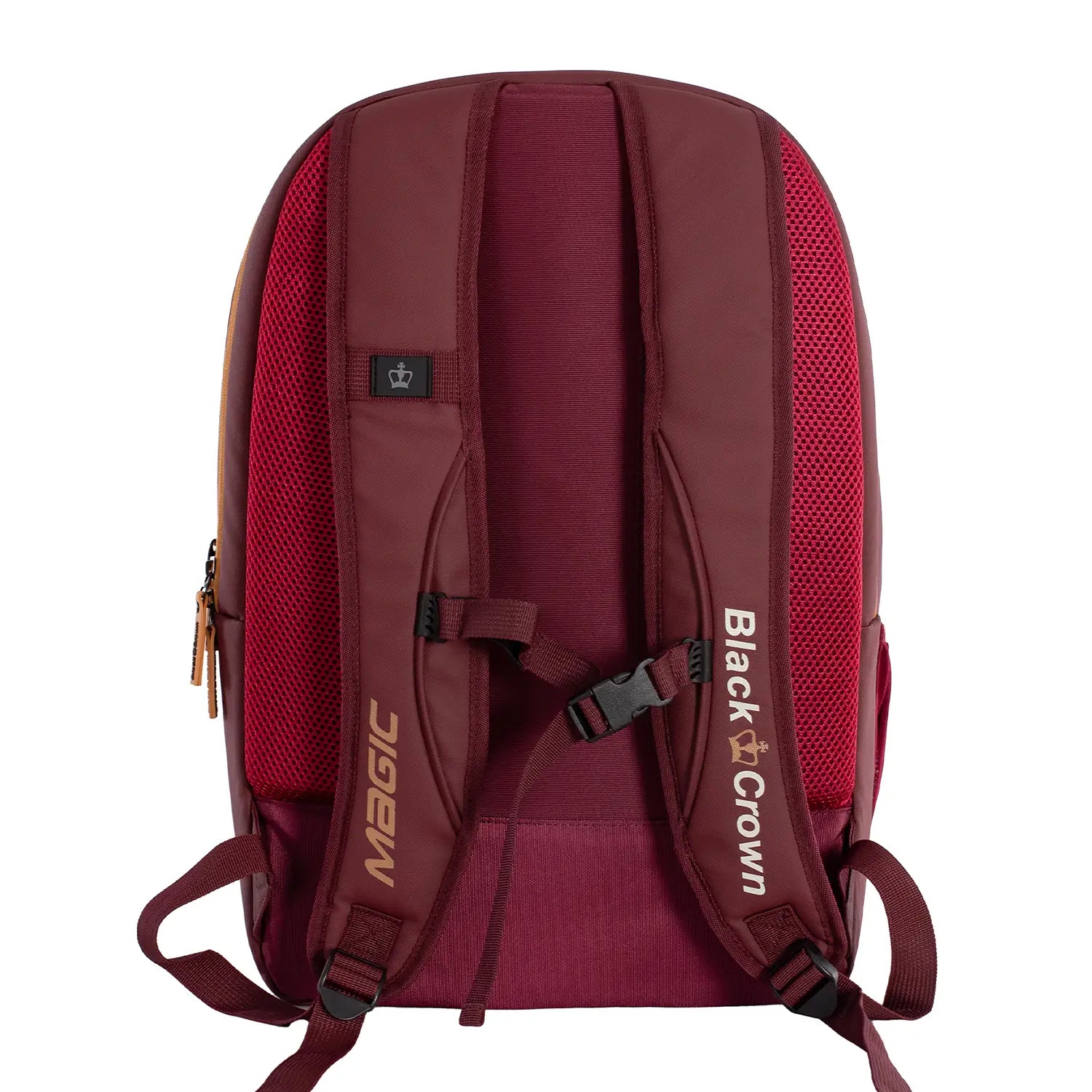 La Mochila Black Crown Magic Burdeos/Dorado es la combinación perfecta entre estilo, capacidad y funcionalidad. Diseñada para los jugadores de pádel más exigentes, destaca por su estructura resistente y su diseño elegante en color burdeos con negro, que no pasa desapercibido en la pista.