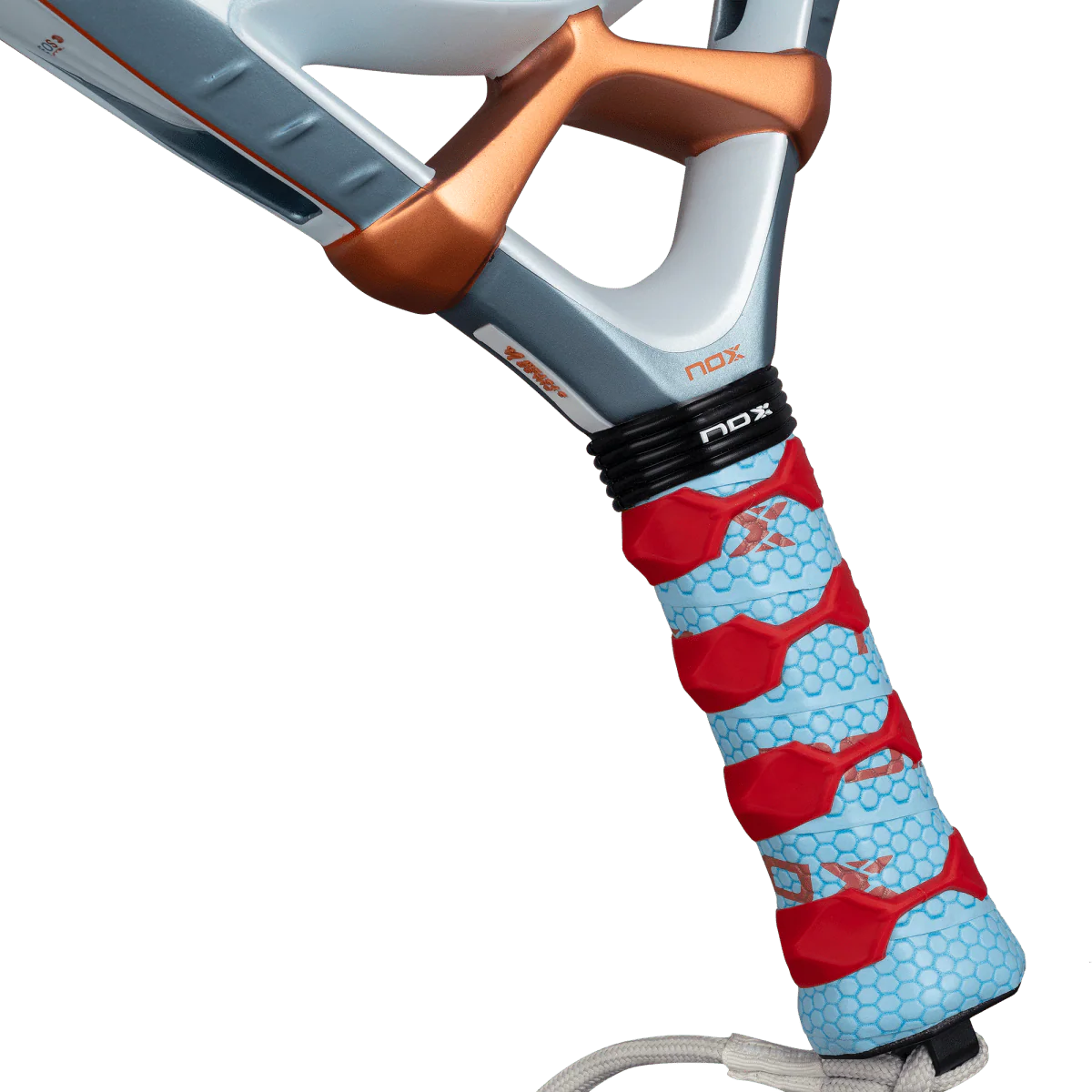 - Custom Grip: tecnología patentada NOX que mejora el agarre y reduce vibraciones, certificada por Testea Padel.