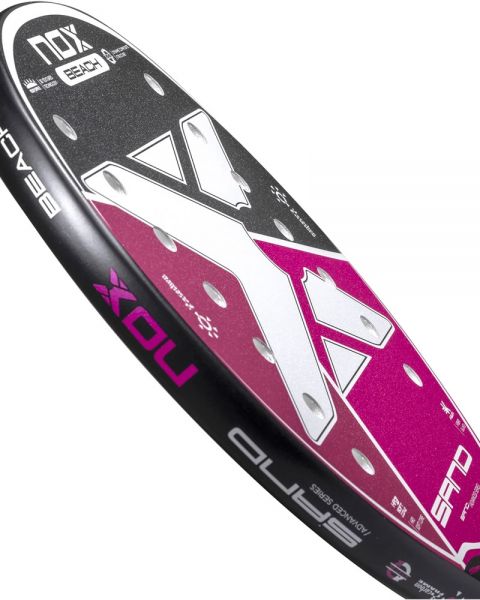 Disfruta del verano y del padel de playa con esta Pala Beach Tennis Nox Advanced es una pala con el núcleo más suave que el modelo similar a este, la goma EVA es diferente entre ellas, lo que hace que la SAND PINK sea ligeramente más suave que la Sand Green.