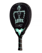 La pala combina un diseño sofisticado con toques en azul celeste y negro, ofreciendo no solo un gran rendimiento, sino también un estilo elegante que captará todas las miradas en la pista.