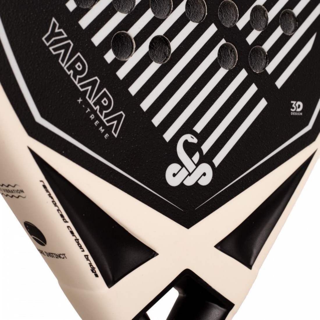 - Material de la Superficie: La superficie de la Yarara Xtreme Fiber Negro 2025 está fabricada en fibra de vidrio, lo que le proporciona una gran flexibilidad y un toque más suave, ideal para un excelente control sin sacrificar la potencia. Este material permite una salida de bola rápida y ayuda a mejorar el confort en cada golpe.