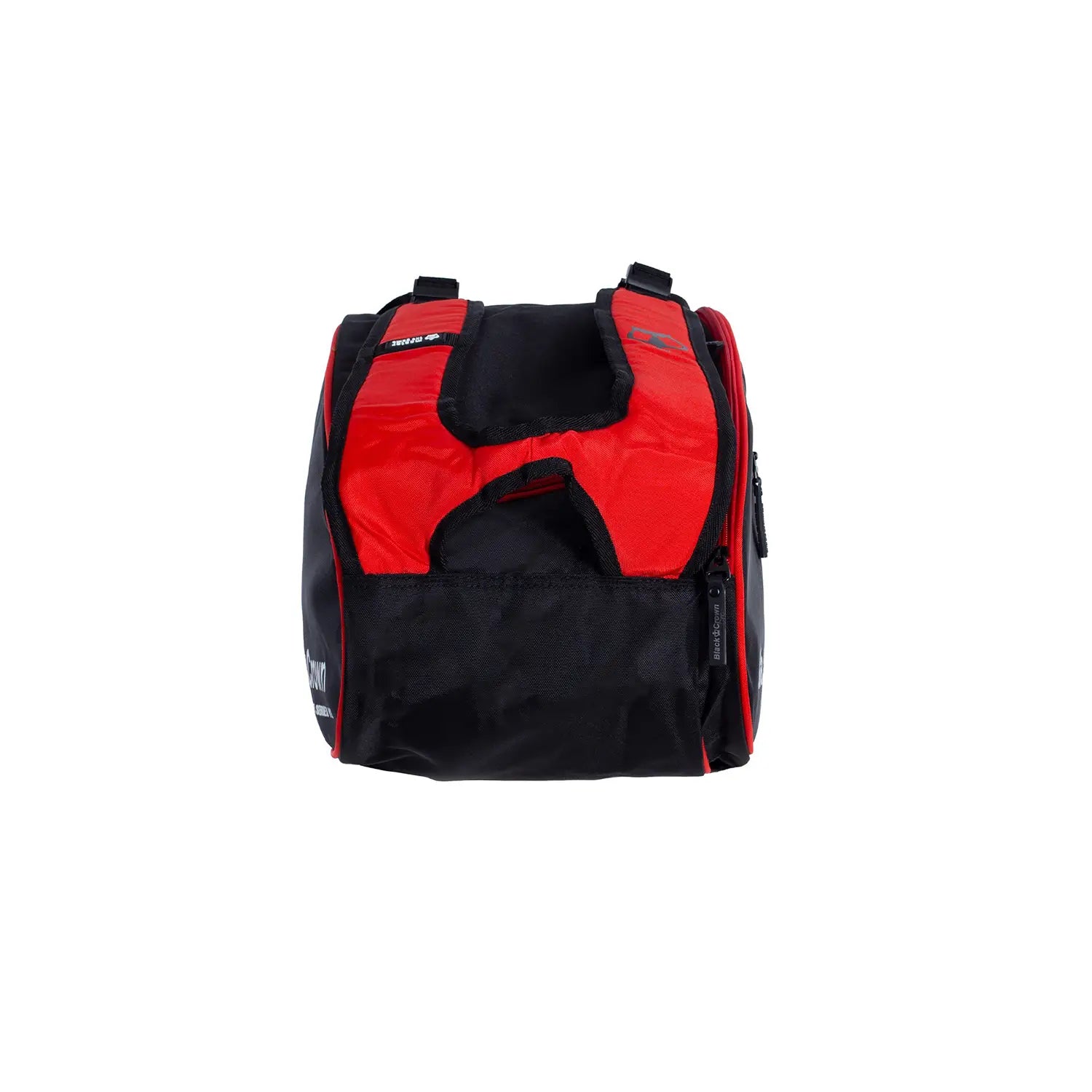 Gracias a sus asas acolchadas y ajustables, se puede llevar tipo mochila con total comodidad. Su diseño en negro y rojo le da un aspecto potente y moderno, mientras que el logotipo de Black Crown aporta el toque distintivo y profesional.
