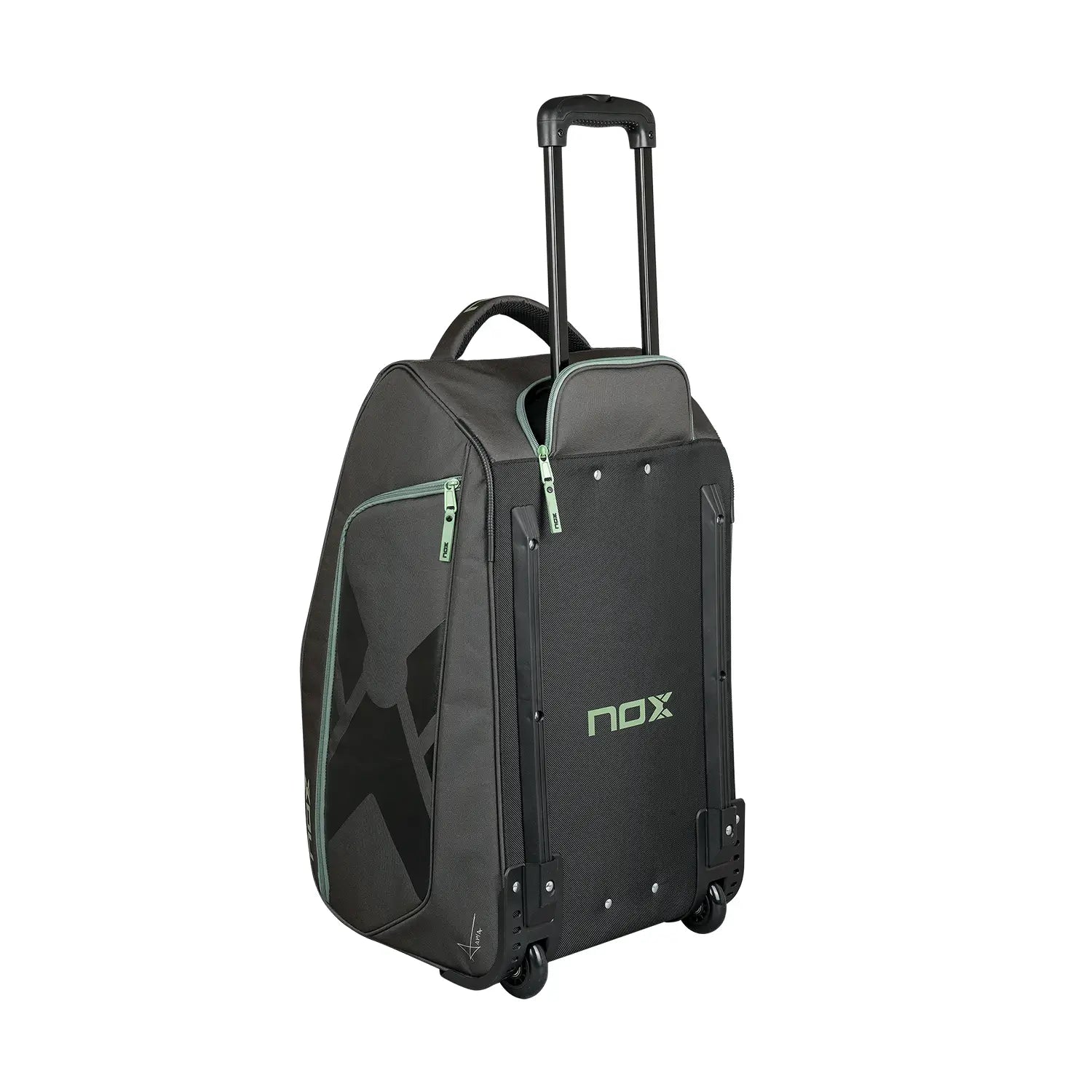 El Paletero Nox AT10 Competition Trolley es la solución perfecta para quienes buscan comodidad y capacidad en sus viajes. Diseñado con un compartimento principal espacioso, ofrece una entrada fácil mediante una doble cremallera, ideal para almacenar tus palas de pádel y otras pertenencias.