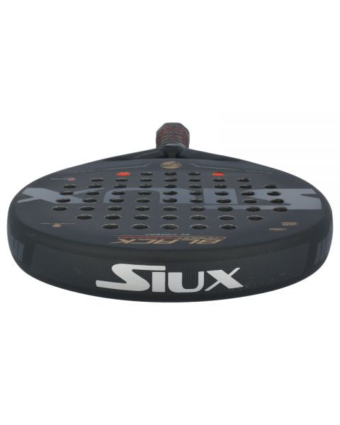 La Siux Black Carbon Revolution 3K es una pala diseñada para jugadores exigentes que buscan un dominio total en cada punto. Con formato redondo, balance medio y un punto dulce amplio, esta pala ofrece una combinación excepcional de control, maniobrabilidad y sensaciones en el golpeo.