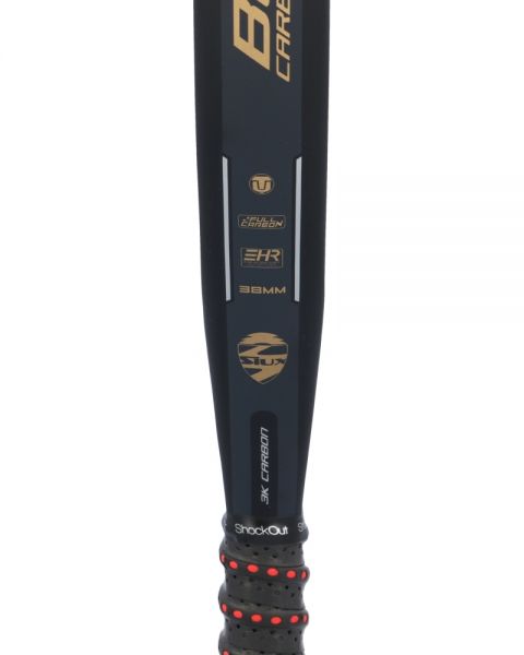 Gracias a su goma EVA Soft EHR, proporciona un tacto cómodo y preciso, mientras que la incorporación de ShockOut antivibración y carbono 3K en los planos garantizan estabilidad, rendimiento y absorción de impactos durante los partidos más intensos.