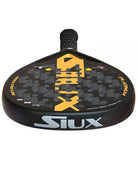 La pala Platinum 24K de Siux ha sido actualizada con el nuevo sistema Revolution. Esta innovadora tecnología consiste en el uso de un bitubular plano de carbono en el marco de la pala que, junto al puente de la misma, ofrece una mayor absorción de las vibraciones durante el juego.