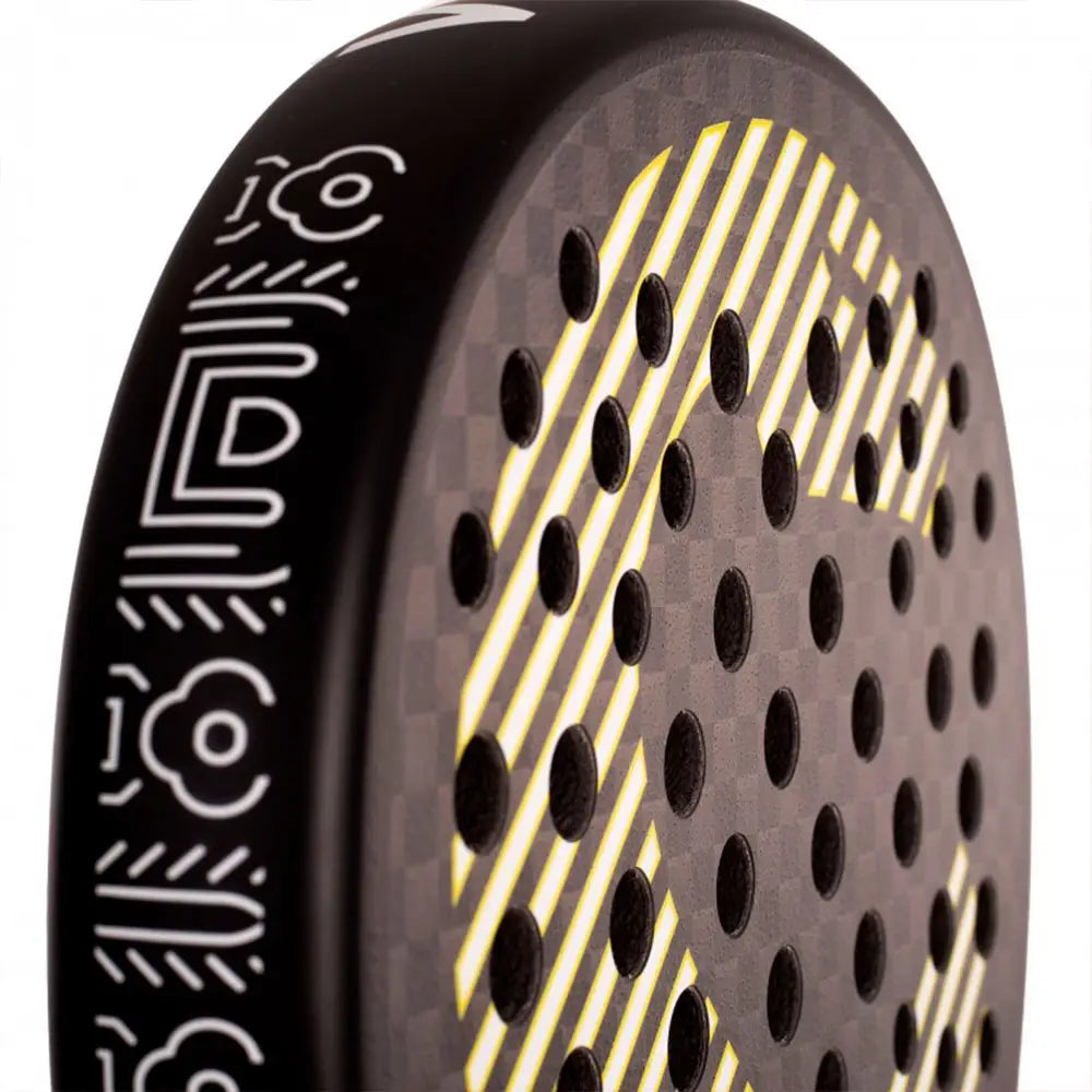 La Vibor-A Mamba Pro Black 2025 es una pala de alto nivel que combina innovación tecnológica con un diseño agresivo y profesional. Su nueva estructura perforada lateralmente no solo mejora la aerodinámica, sino que también aporta mayor maniobrabilidad y precisión en cada golpe. Con su acabado rugoso mate y una estética en negro y amarillo, esta pala destaca tanto en estilo como en rendimiento, siendo una elección ideal para jugadores que exigen lo mejor.
