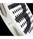 Cuatro dampeners de geometría tipo muelle absorben hasta un 49% de las vibraciones. Permiten personalizar el balance y la sensación de la pala, adaptándola a tu estilo de juego para maximizar control o potencia según lo necesites.