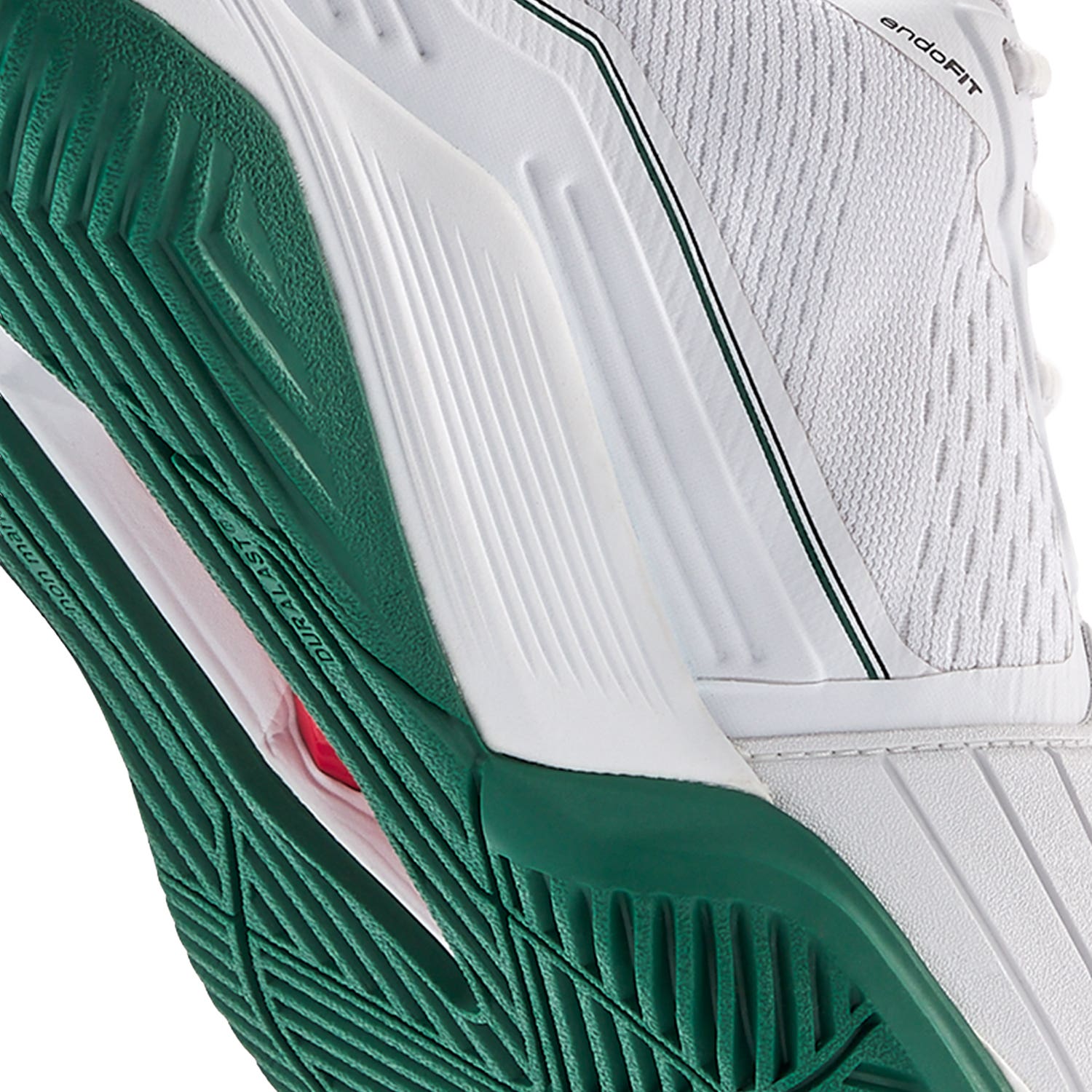 - Diseño moderno: Base blanca con suela verde para un toque de energía.